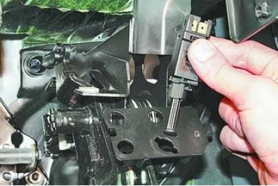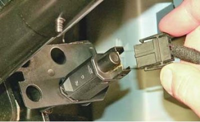 1. Отсоедините колодку жгута проводов от выключателя стоп-сигнала, сжав фиксаторы ее крепления.