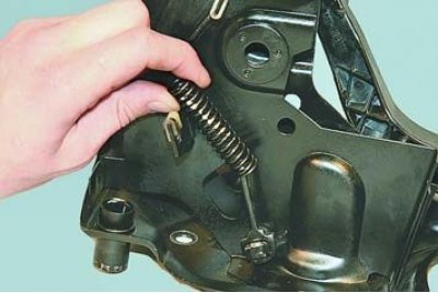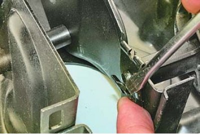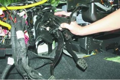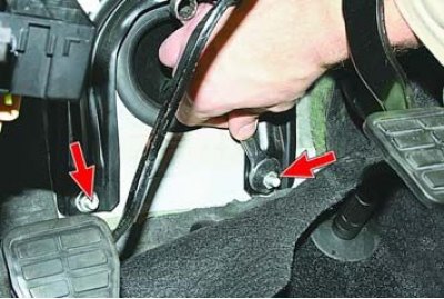 Примечание. Педаль привода дроссельной заслонки снимайте только в случае крайней необходимости, так как ее ось дополнительно зафиксирована в кронштейне сваркой.