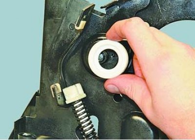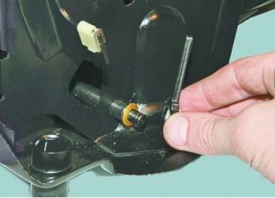 21. ...и снимите с оси кронштейна направляющую и ее дистанционную шайбу.