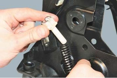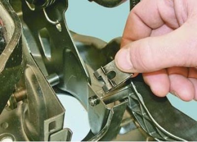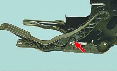 Примечание. Если снимаете педальный узел для замены, снимите с него выключатель стоп-сигнала (см. «Замена выключателя стоп-сигнала»).