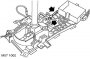 Насос рулевого гидроусилителя (модели с двигателем Td4) Демонтаж 1. Отсоедините "отрицательную" клемму аккумуляторной батареи. 2. Снимите опору двигателя. ДВИГАТЕЛЬ - Td4, Впускной и выпускной распредвалы, Гидроопора двигателя правая. 3. Ослабьте 3 болта крепления шкива привода насоса рулевого...