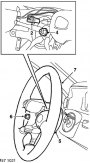 Механизм блокировки рулевого колеса и замок зажигания Демонтаж 1. Отсоедините "отрицательную" клемму аккумуляторной батареи. 2. Выньте ключ из замка зажигания. 3. Снимите верхнюю и нижнюю части кожуха рулевой колонки. РУЛЕВОЕ УПРАВЛЕНИЕ, РЕМОНТНЫЕ РАБОТЫ, Кожух рулевой колонки. 4. Отсоедините...