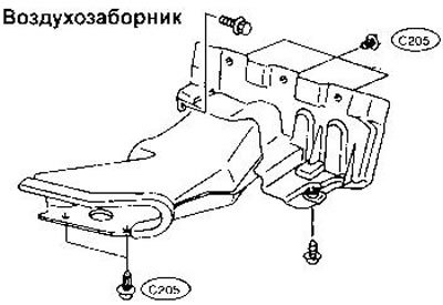 1. Снимите передний спойлер (на рисунке не показан), который крепится одним винтом снизу: