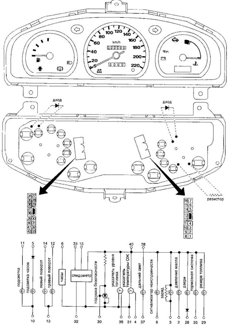 Статья о ремонте автомобилей «Ниссан Альмера Н15» (1995-2000): «Комбинация приборов — устройство»: https://autoinstruction.ru/Nissan/Almera/N15/electrical/equipment/167757