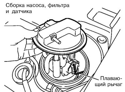 10. Установка производится в обратном порядке. Используйте новое уплотнительное кольцо. Выступ на сборке топливного насоса должен входить в соответствующую прорезь в его установочном отверстии.