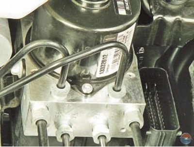 В данном подразделе описана только замена датчиков частоты вращения колес и гидроэлектронного блока, однако имейте в виду, что для удаления воздуха, который может попасть в систему клапанов гидроэлектронного блока при неквалифицированном снятии, требуется специальное оборудование. Поэтому рекомендуем для замены блока обратиться на сервис.