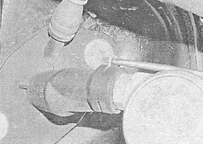 Во избежание повреждения лакокрасочного покрытия, не допускайте попадания гидравлической жидкости на окрашенные поверхности кузовных панелей! Снимите со штуцерного разъема уплотнительное кольцо, — при сборке оно подлежит замене в обязательном порядке.