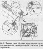 Центральная консоль — снятие и установка Снятие 1. Сместите передние сиденья вперед. 2. Вывинтите болты крепления подлокотника на центральной консоли (см. стрелки на иллюстрации). 3. Отсоедините штекер 2 прикуривателя и привода задней воздухораспределительной заслонки (см. иллюстрацию...