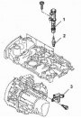 Датчик детонации двигателя Расположение датчика показано на Рисунок 3.104. Для снятия отсоедините от датчика контактный разъем и выверните его из блока цилиндров. Перед установкой убедитесь в чистоте датчика и посадочного отверстия, так как это очень важно для правильного...