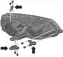 Детали и узлы биксеноновой фары со светодиодным модулем Указание: Светодиодный модуль предназначен для габаритного огня и переднего ходового огня. Светодиодный модуль встроен в фару, и не может быть заменён по отдельности. 1. Блок управления газоразрядной лампы -J343- левый или -J344- правый 2. Корпус...