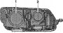 Снятие и установка серводвигателя коррекции угла наклона фар Снять фару, у которой необходимо демонтировать исполнительный электродвигатель. Снять накладку -2-. Левая фара Осторожно выломать заглушки -2-. Вывернуть находящие под заглушками крепёжные винты. Указание: Винты находятся не точно под заглушками....