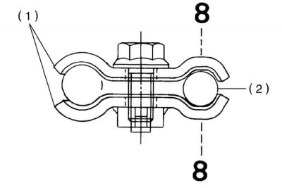 3. Удостоверьтесь в правильности расположения маркировки в виде цифры 8 на обеих секциях хомута Е, затем затяните стяжной болт с требуемым усилием (7.4 Нм).