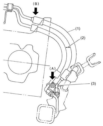Детали подсоединения шлангов возвратной и напорной линий на моделях 3.0 л