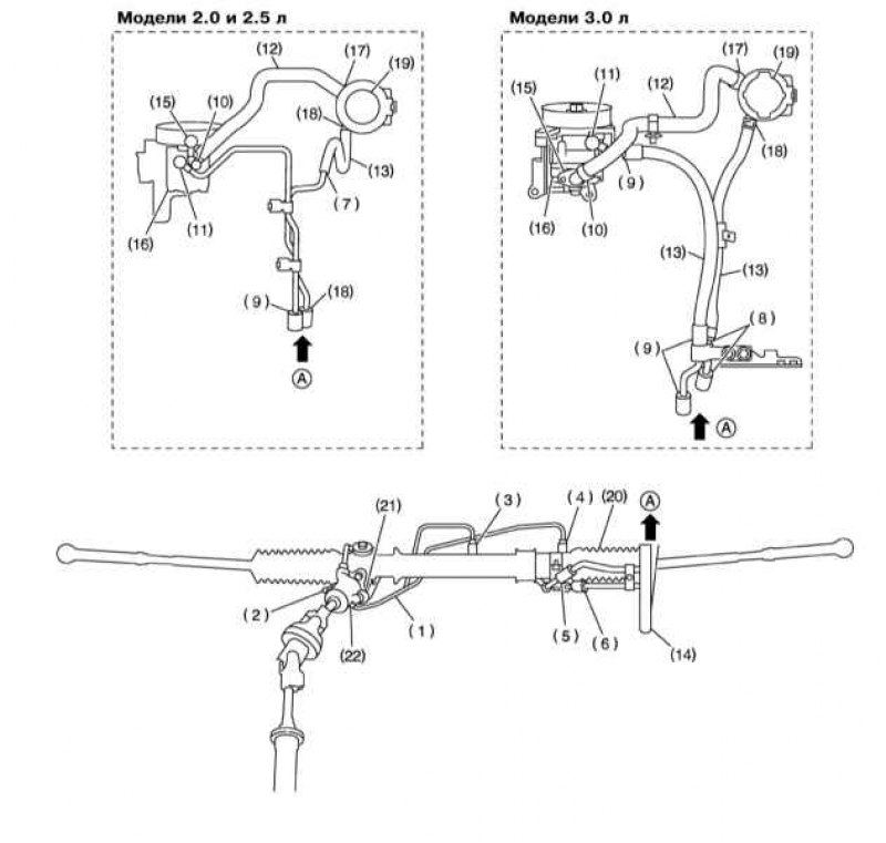 Схема прокладки трубопроводов гидравлических линий системы ГУР