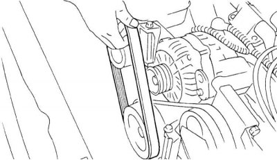 1. Снимите клиновидный приводной ремень.
