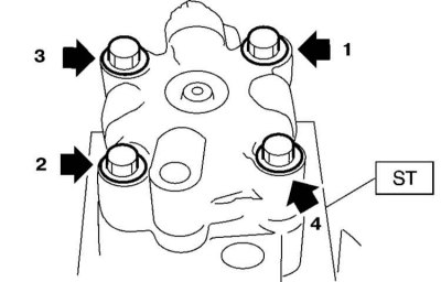 15. Вверните крепежные болты и затяните их с требуемым усилием (27.5 Нм), затем, действуя строго в определенном порядке, отпустите болты и вновь затяните их с требуемым усилием (в порядке отпускания).