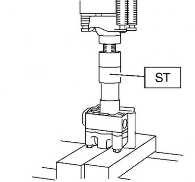 8. Поместите сборку рулевого насоса в кондуктор ST 34199АЕ020 и закрепите в тисках.