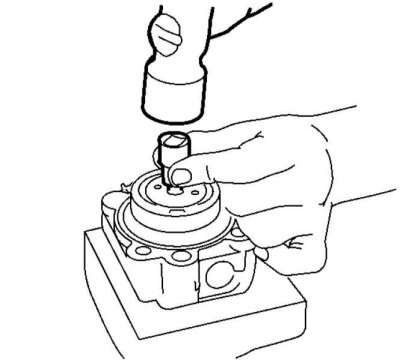 Притягивание втулки к сопрягаемой поверхности насосной сборки (модели 2.0 и 2.5 л)