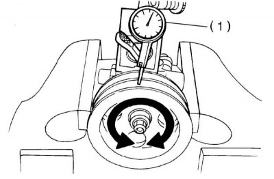 3. Определите величину радиального биения шкива по дну ручья. При превышении результатом измерения предельного допустимого значения (1.0 мм) замените шкив.