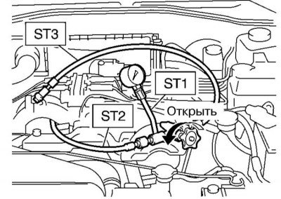 5. Откройте вентиль манометра и запустите двигатель на холостые обороты.