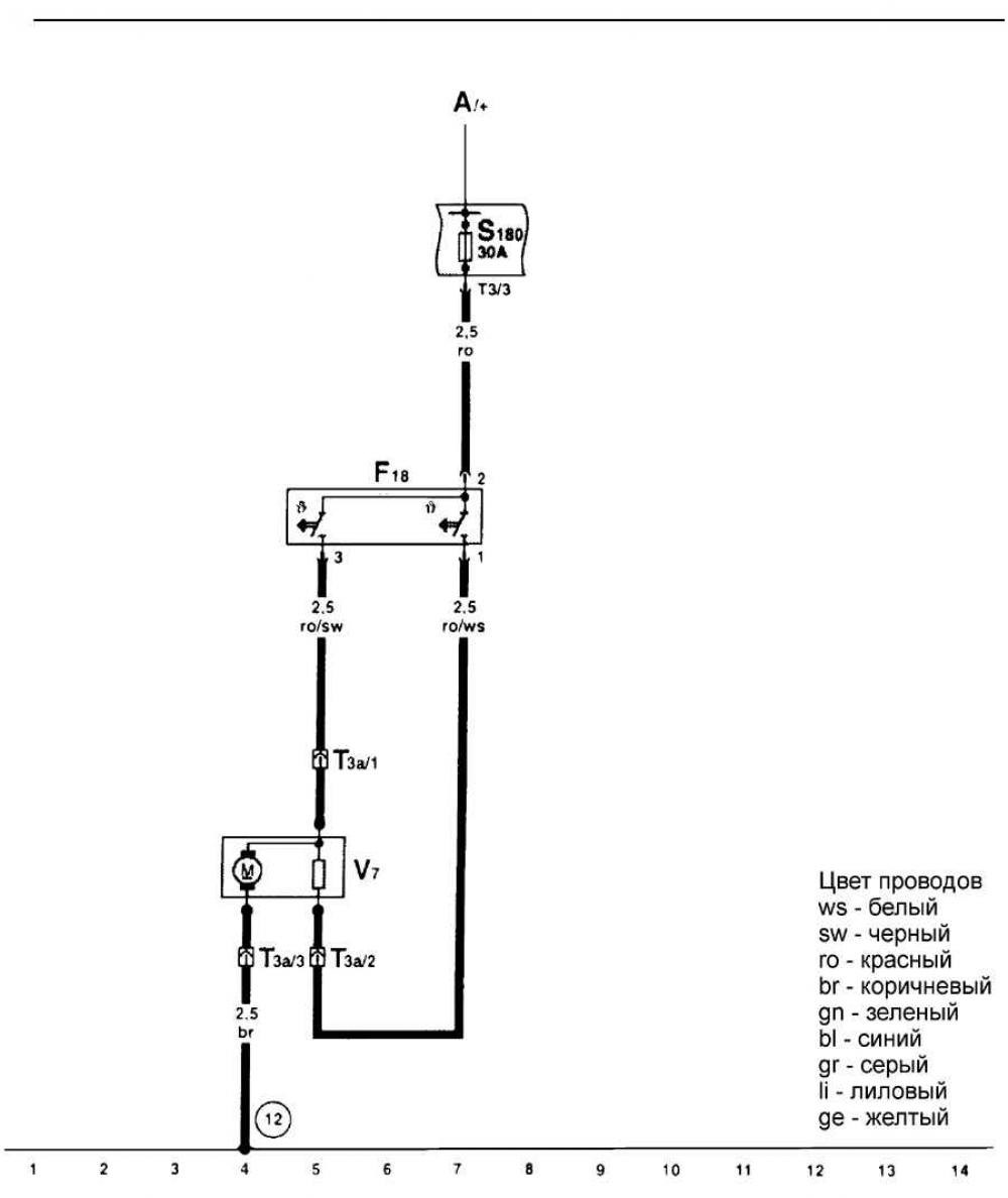 Схема 14. Обогреватель заднего стекла, двигатель очистителя заднего стекла...