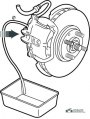Ремонт суппорта тормоза заднего колеса Порядок выполнения ремонтных работ следующий: 1) подготовка: отсоедините внутренний трос от рукоятки стояночного тормоза; снимите колесо; тщательно очистите суппорт; 2) слейте тормозную жидкость: снимите защитный колпачок со сливного штуцера,...